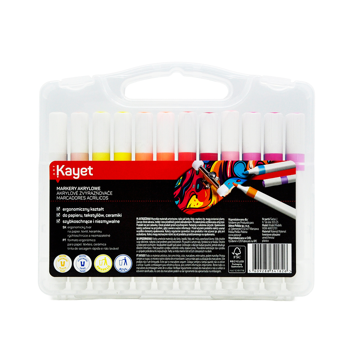 Acrylic markers for use on various surfaces such as paper, textiles, ceramics, etc. They have an ergonomic shape, are quick-drying and indelible.