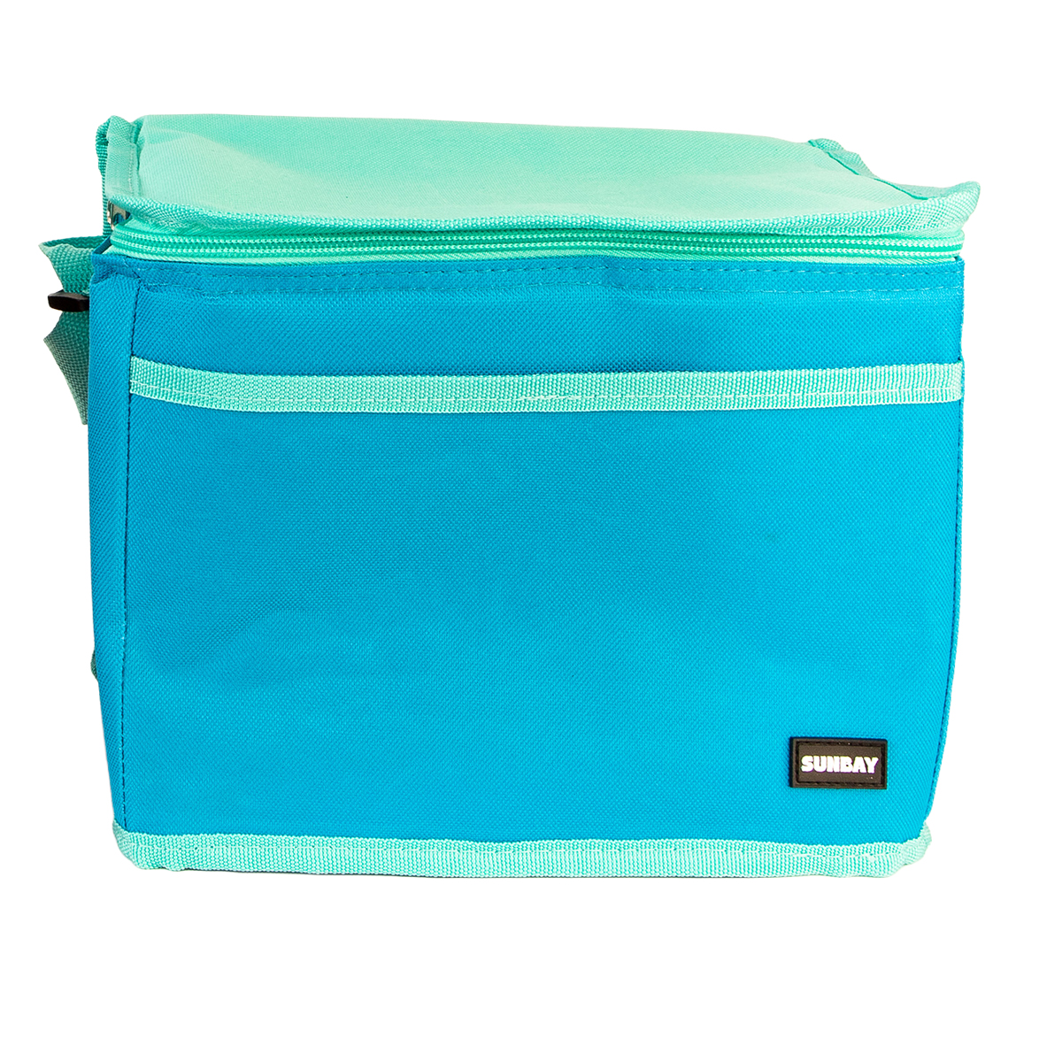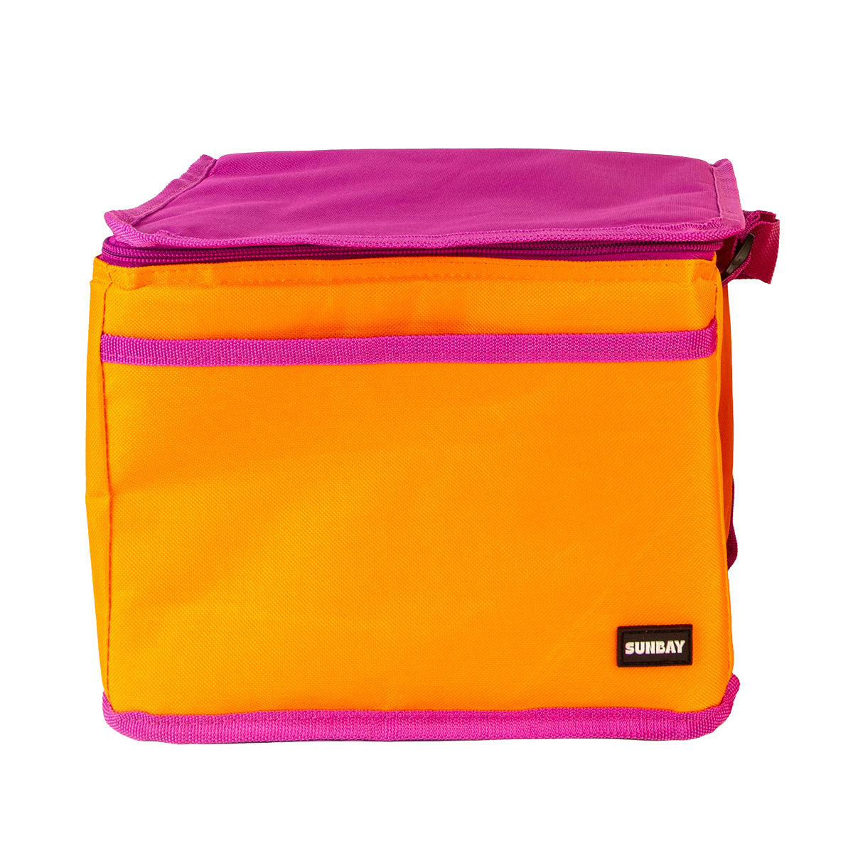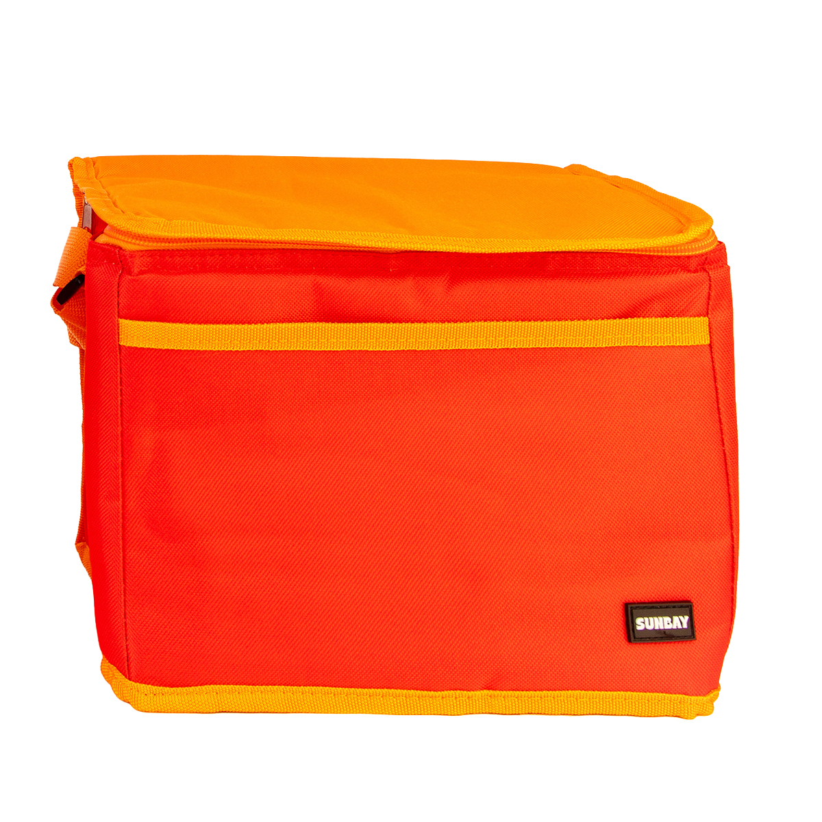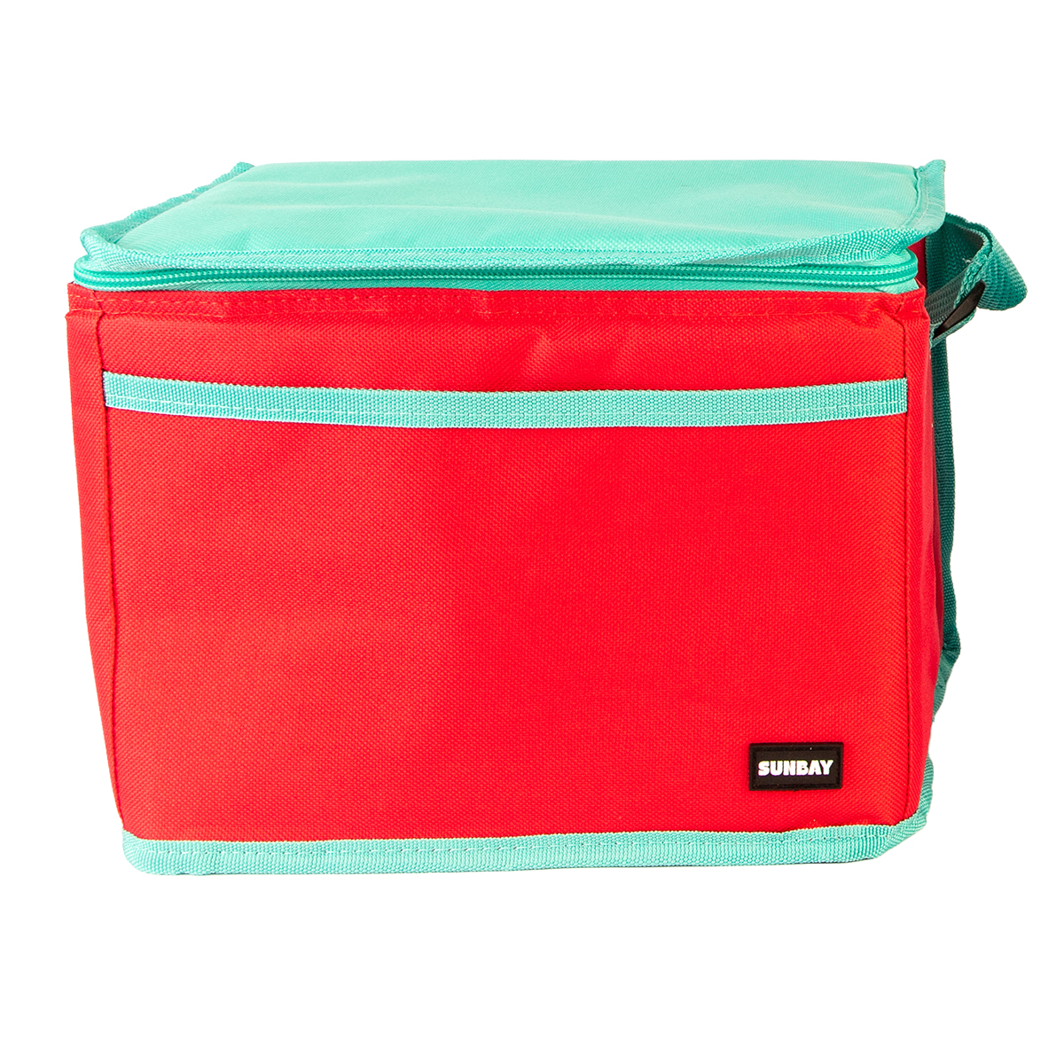 Outside in polyester, inside aluminum and foam insulation. 100% customised colors/patterns for the outside layer and handles.