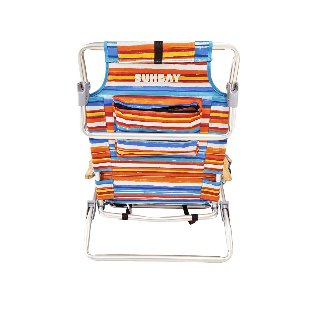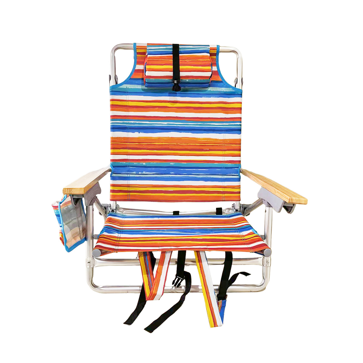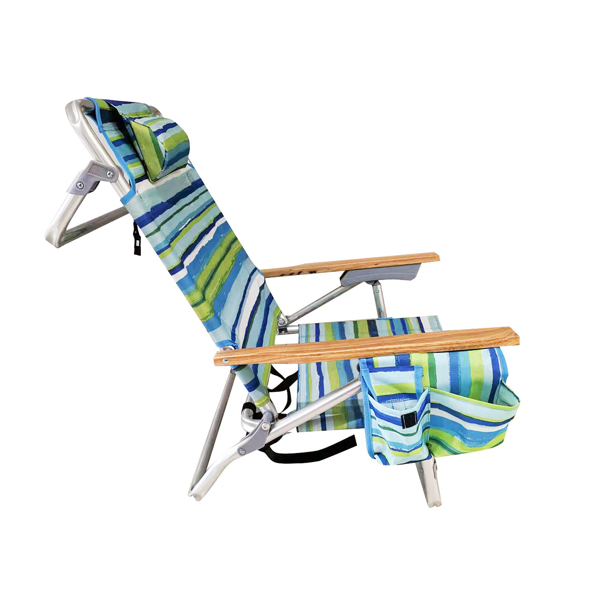 Premium chair, multi-position, aluminium structure, that can be folded and carried as a backpack. Includes pillow, storage bag and cup holder.